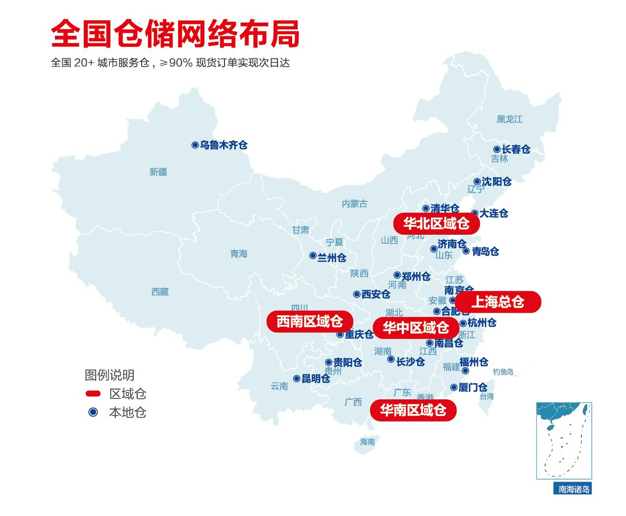 泰坦科技有能力保障该集团如此庞大需求的高效运转,很大程度上得益于基础服务设施的布控。2020年上市后,泰坦科技围绕全国一二线发展城市,设立了上海、廊坊、武汉、成都、广州五大区域中心仓,20余座城市前置服务仓,总仓库面积近7万平方米。各仓库配备专业的危化品运输车辆,与普货车协同配送;总仓、区域仓、城市仓之间,可以逐级补货、就近调货,保障货物送达效率。
