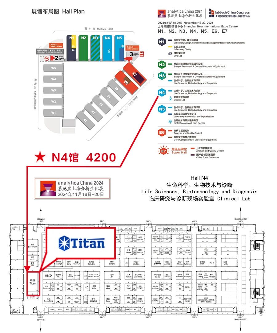 第十二届慕尼黑上海分析生化展(analytica China 2024)将于11月18日-20日,在上海新国际博览中心举办。泰坦科技展位号为N4馆4200,展位面积120㎡。